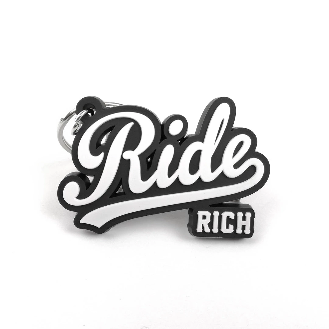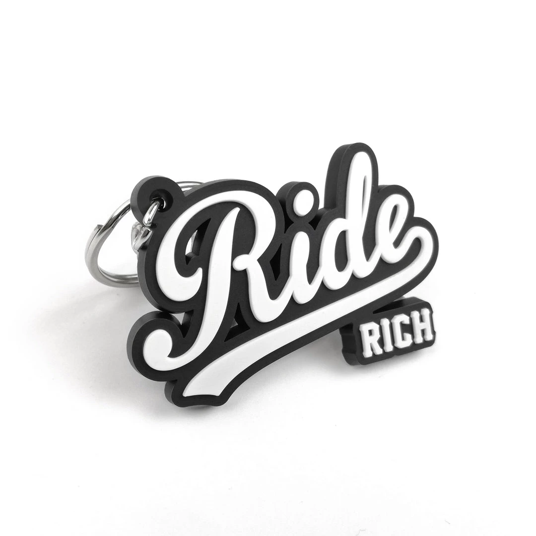 Precision cut 2D Keychain with Split Key Ring. Constructed of PVC plastic with a rubber like feel that won’t scratch up your bike.