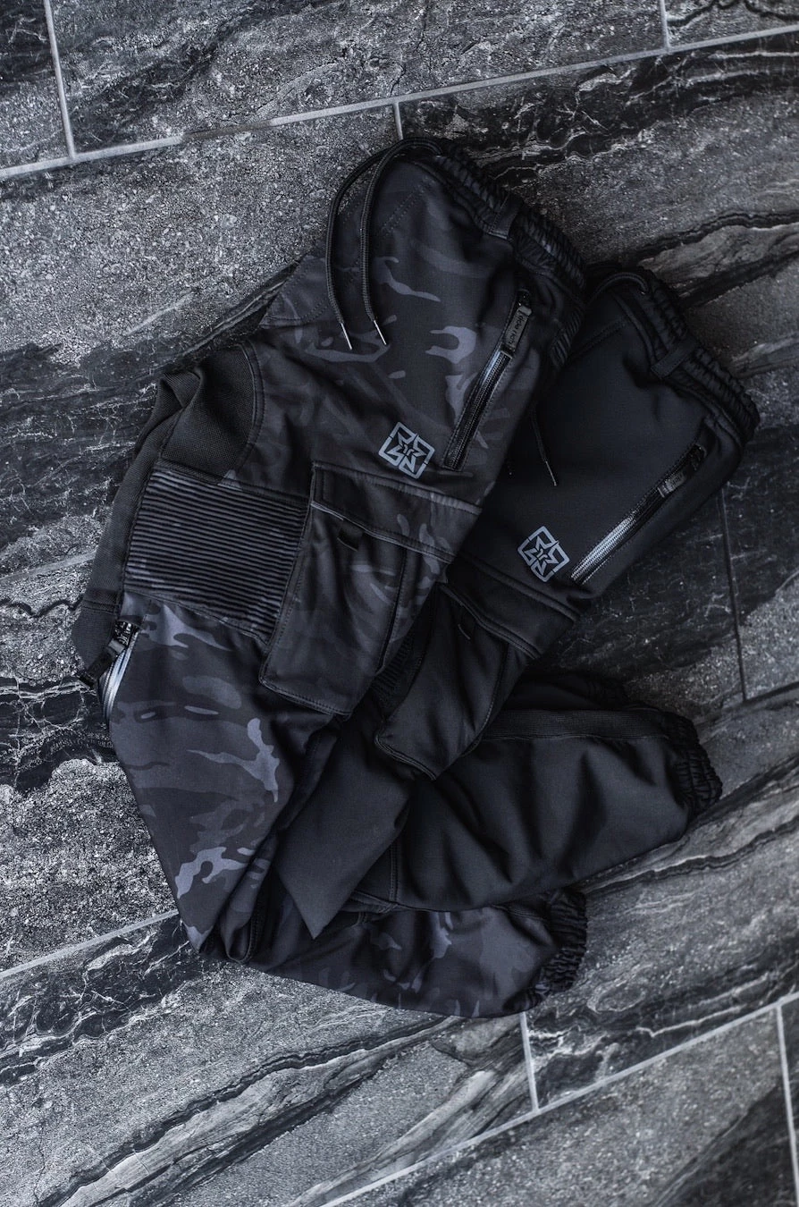 The Unit 16™ Armoured Softshell Cargo Joggers are made from waterproof+windproof softshell fabric with DuPont™ Kevlar® lining and CE approved impact protectors in an original drop crotch jogger design.