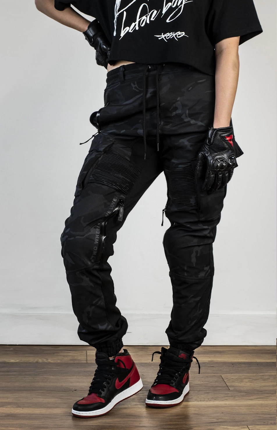 Female model is 5’5″ rockin’ size XS.