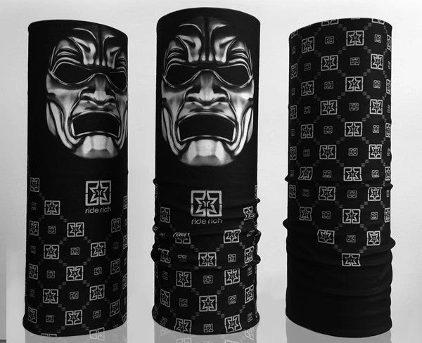 Our Exclusive Rich Wrap is constructed of 100% Polyester Microfiber, it’s breathable, moisture-wicking and features multiple ways to wear it. The Seamless Tubular Bandana Design allows wearing without creating pressure points or headaches. Custom artwork consists of a Ride Rich Pattern and a Goon Mask like no other.