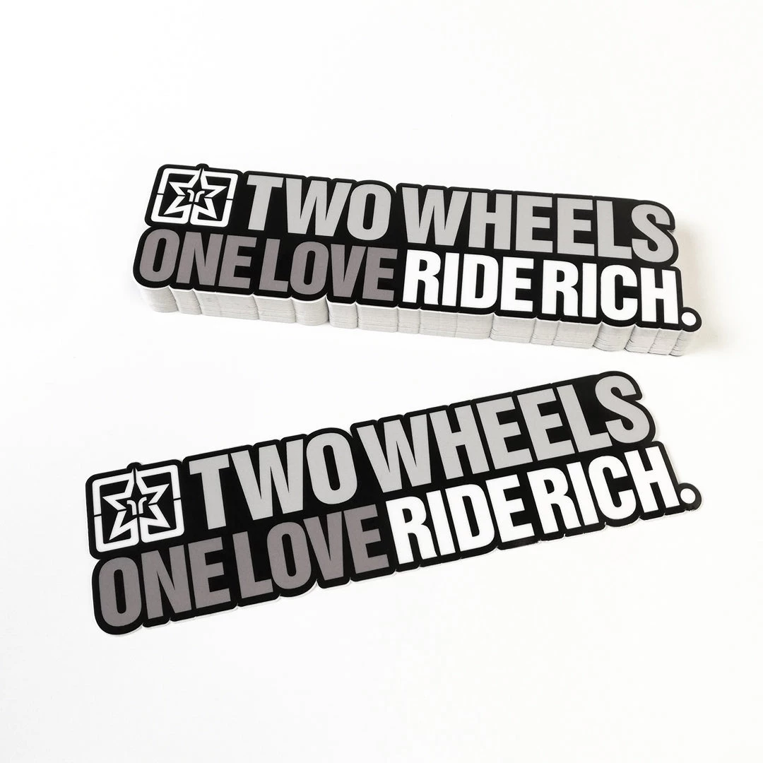 Our Ride Rich Vinyl Stickers are high-quality printed with a high-gloss, weather and UV-resistant coating that allow them to last in indoor and outdoor conditions for years without fading, cracking or peeling.
