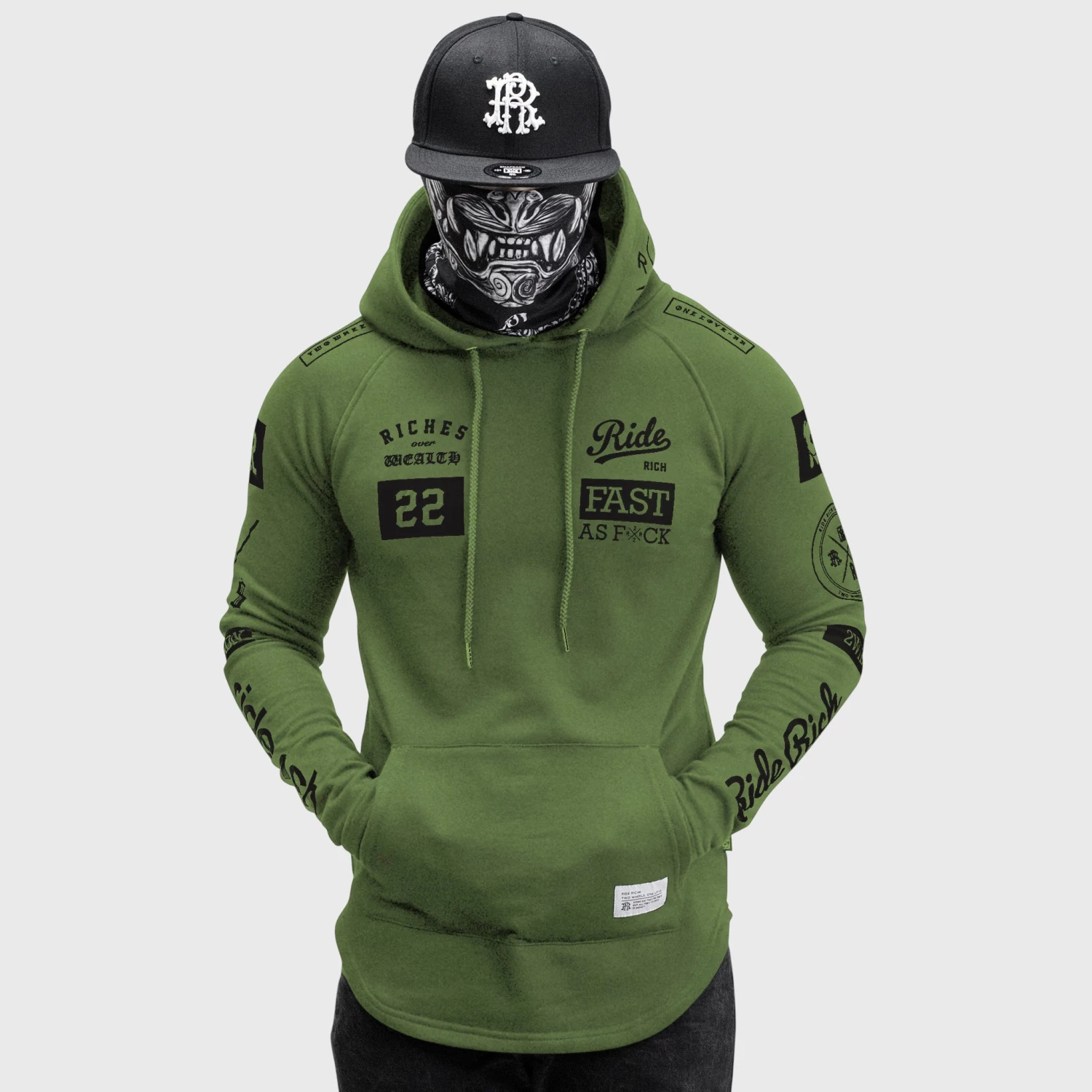 This exclusive pullover hoodie features a mix of our classic and new prints for our fans who’ve always been down with the movement! Ride Rich.
