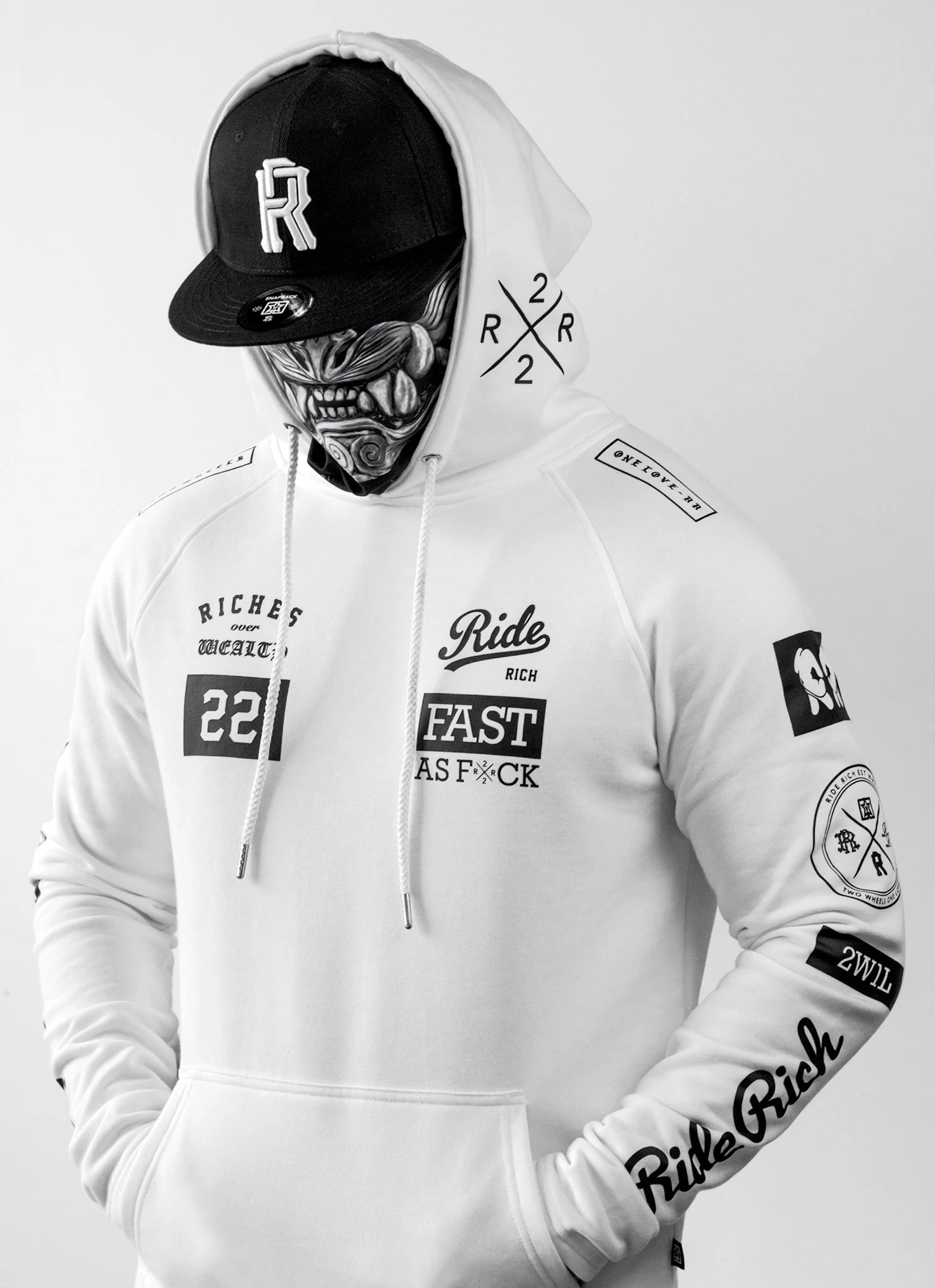 This exclusive pullover hoodie features a mix of our classic and new prints for our fans who’ve always been down with the movement! Ride Rich.