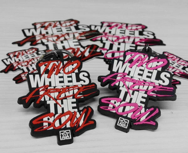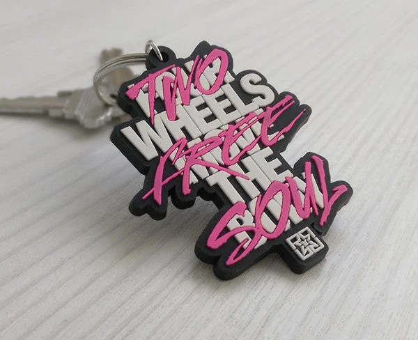 Precision cut Keychain with Split Key Ring. Constructed of PVC plastic with a rubber like feel that won’t scratch up your bike.