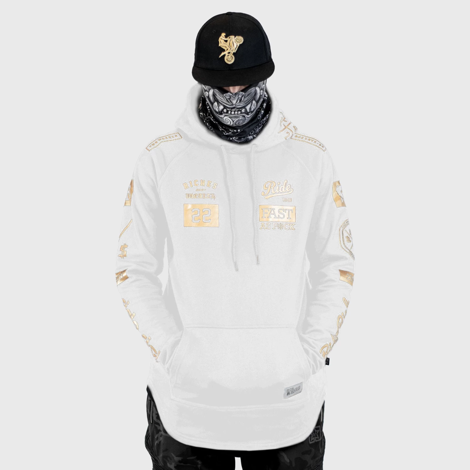 This exclusive pullover hoodie features a mix of our classic and new prints for our fans who’ve always been down with the movement! Ride Rich.