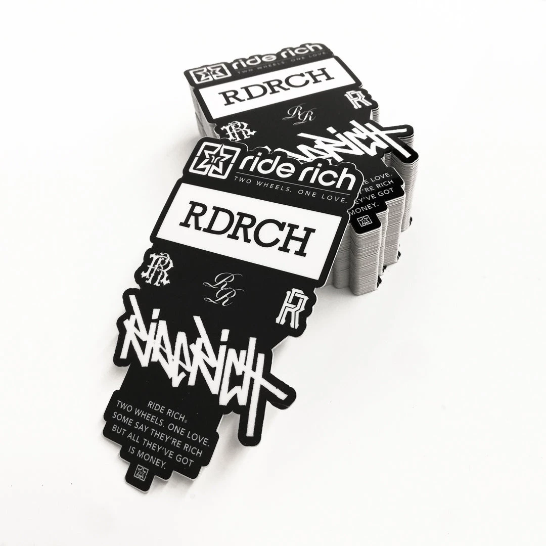 Our Ride Rich Vinyl Stickers are high-quality printed with a high-gloss, weather and UV-resistant coating that allow them to last in indoor and outdoor conditions for years without fading, cracking or peeling.