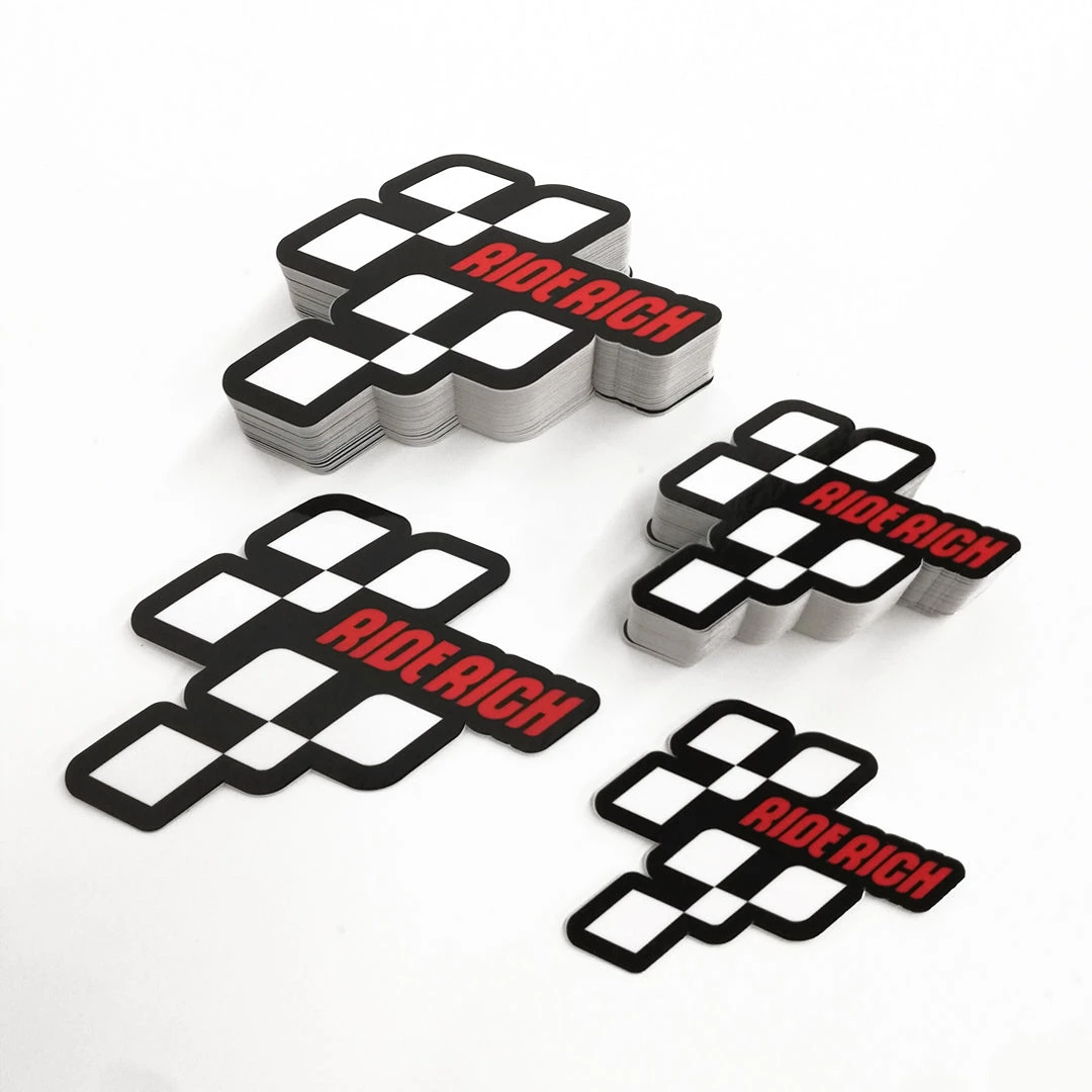 Our Ride Rich Vinyl Stickers are high-quality printed with a high-gloss, weather and UV-resistant coating that allow them to last in indoor and outdoor conditions for years without fading, cracking or peeling.