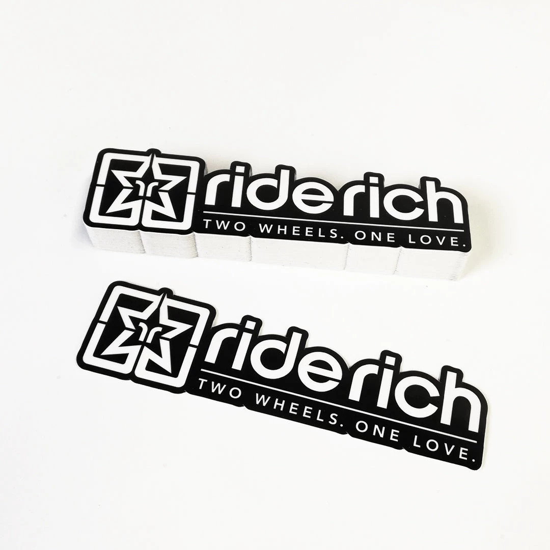 Our Ride Rich Vinyl Stickers are high-quality printed with a high-gloss, weather and UV-resistant coating that allow them to last in indoor and outdoor conditions for years without fading, cracking or peeling.
