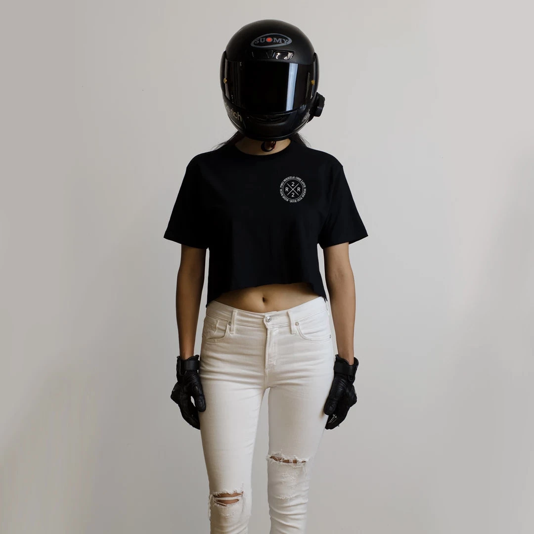 Ladies’ crop tee. 100% Combed Ringspun Cotton. Super-soft, lightweight. Machine washable, raw edge bottom and preshrunk to minimize shrinkage. Hang dry always recommended.